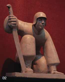 刘若望的雕塑就是这样一个例子。他出生在陕北,有着朴实的性格,像黄土高原一样心地憨厚,对艺术坚韧、执著,这些成为他学习艺术、追求艺术的根本和艺术生命的来源。他不断学习、摸索,也学习绘画,但最终让他怀有不可遏制的艺术表现欲望的,是雕塑。或者在他看来,不是规范下的雕塑分类,而是他意识深处的生命涌动,使他触摸到这种形体的力量,使他感动于这种体量的存在。他不仅仅是掌握作为艺术的雕塑语言,最重要的是他让雕塑“联动”起来,在隐匿的脉络中构建一种历史叙事。这个叙事不是现实主义反映论雕塑,模拟某种社会形象,而是建立在纵向的历史情境中,向自己的生命经验索取表现灵感,将直观的具象与超现实的观念融合起来。刘若望对雕塑的驾驭完全是为了他的叙事想象,他确立如此重量的体块表现,是因为他内心被某种力量慑服着,他必须用视觉的力量去对抗它、瓦解它。这时候,雕塑语言对于他,不再是空间概念,而变成与历史对话的一种视觉隐喻。